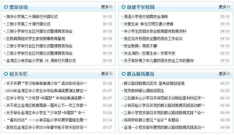 珠海市金灣區(qū)教育局2013年與動易進行項目合作,建設珠海市金灣區(qū)教育信息網。金灣區(qū)教育局以資源整合、信息共享為基礎,選用動易SiteGroup站群管理系統(tǒng)和動易Smartschool數字化校園管理系統(tǒng)等動易軟件建立以區(qū)教育局網站為中心主站,以所轄20所學校網站為子網站、以社會公眾為服務對象的金灣區(qū)教育信息網站群系統(tǒng)。通過統(tǒng)一規(guī)劃、統(tǒng)一部署、統(tǒng)一管理,基于對分散的信息資源進行有效的整合,實現(xiàn)資源互通共享,避免信息孤島,加快教育局對公眾實現(xiàn)“一站式”服務的步伐,提高網站的應用水平。