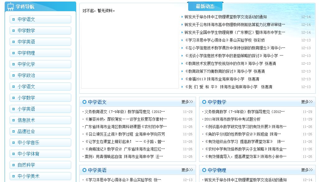 珠海市金灣區(qū)教育信息網的成功上線,改變了金灣區(qū)以往沒有綜合教育門戶網站的局面。金灣區(qū)教育信息網自開通后,成為了宣傳金灣區(qū)教育的主要窗口和服務大眾的重要平臺:成為金灣區(qū)教育局對外宣傳教育形象的窗口,發(fā)布金灣區(qū)教育局的最新動態(tài);成為金灣區(qū)網上教學資源庫,提供眾多教學資源;成為金灣區(qū)教師進修學習的平臺,使教師通過網站得到有用學習信息;成為了社會公眾咨詢教育問題,辦理教育事項的便民通道;成為區(qū)教育系統(tǒng)內部及區(qū)教育局與各學校協(xié)調工作的平臺,通過該平臺,提供充分的溝通交流機會,提高協(xié)調工作的效率。