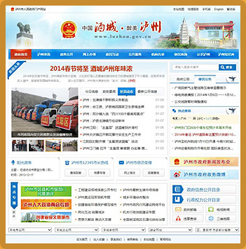 瀘州市人民政府門戶網(wǎng)站堅(jiān)持以人為本,以公眾為中心,把為公眾服務(wù)、為企業(yè)服務(wù)作為出發(fā)點(diǎn)和歸宿,堅(jiān)持“政務(wù)信息公開、網(wǎng)上辦事和互動(dòng)交流”三大功能定位,著力打造服務(wù)型政府網(wǎng)絡(luò)平臺。瀘州市人民政府門戶網(wǎng)站已經(jīng)開通中文簡體版、中文繁體版、英文版、手機(jī)版。