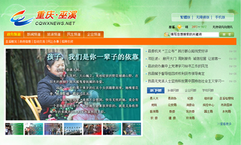 重慶巫溪縣人民政府門戶網(wǎng)站(www.cqwxnews.net)是由中共巫溪縣委、巫溪縣人民政府主辦,中共巫溪縣委宣傳部主管,全縣各鄉(xiāng)鎮(zhèn)(街道)和部門承辦,巫溪縣互聯(lián)網(wǎng)信息中心負(fù)責(zé)技術(shù)支持的網(wǎng)絡(luò)集群。建立以政務(wù)頻道、新聞?lì)l道、旅游頻道、民生頻道、企業(yè)頻道為主要內(nèi)容的主網(wǎng)站,以各鄉(xiāng)鎮(zhèn)(街道)、部門和重點(diǎn)企事業(yè)單位網(wǎng)站為二級(jí)子網(wǎng)站,以各鄉(xiāng)鎮(zhèn)(街道)、部門所屬單位和村、社區(qū)為三級(jí)子站的門戶網(wǎng)站集群。通過網(wǎng)絡(luò)集群的形式推進(jìn)政務(wù)公開,服務(wù)廣大群眾,加強(qiáng)公眾交流,展示巫溪形象。重慶巫溪門戶網(wǎng)是重慶市網(wǎng)絡(luò)媒體協(xié)會(huì)首批會(huì)員單位,也是全市首批獲準(zhǔn)具備新聞資質(zhì)的區(qū)縣網(wǎng)站。