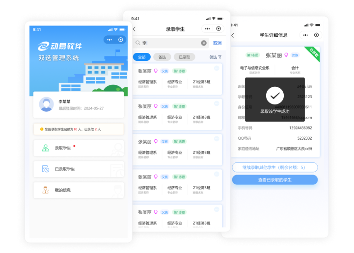 支持根據(jù)院系、專業(yè)、班級對學生信息進行分類管理。