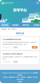 招生考試項(xiàng)目的操作支持:修改、刪除、設(shè)為當(dāng)前招生考試項(xiàng)目(始終只有一個(gè)項(xiàng)目為當(dāng)前項(xiàng)目)、發(fā)布/取消發(fā)布/設(shè)為公示中/設(shè)為過期。發(fā)布后前臺(tái)的招生考試模塊頁面自動(dòng)調(diào)用顯示招生考試公告。