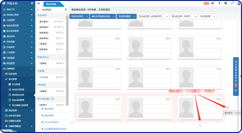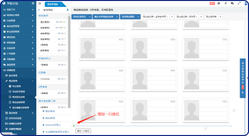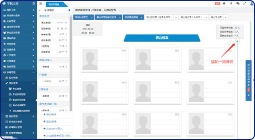 考點(diǎn)和考場管理不需要專門的菜單,直接在“筆試座位安排”的考場導(dǎo)航中欄進(jìn)行管理。