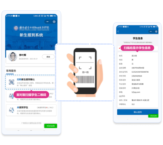 - 2新生報到小程序,手機掃碼即可完成報到,方便快捷