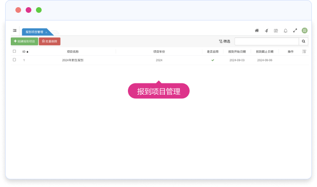 報到項目負責人登錄后臺后,擁有所管理項目下班級數據的管理權限(不具備刪除權限),并可設置班主任權限。