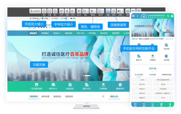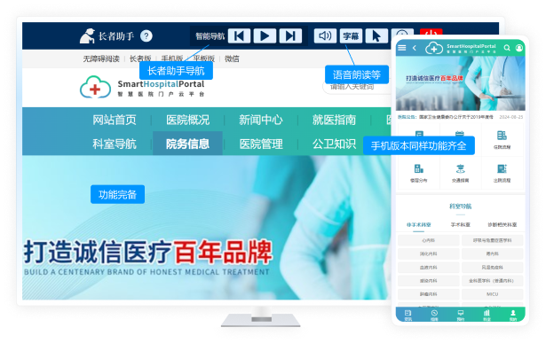 SmartHostpitalPortal 是動(dòng)易基于 WebFuture 智慧門戶管理平臺(tái),面向醫(yī)院及醫(yī)療機(jī)構(gòu)(各類綜合醫(yī)院、專科醫(yī)院、教學(xué)醫(yī)院、康復(fù)醫(yī)院等醫(yī)療單位)實(shí)際需求而量身定制的整套解決方案,以滿足客戶對(duì)醫(yī)院及醫(yī)療機(jī)構(gòu)網(wǎng)站群集約化建設(shè)、信創(chuàng)適配、移動(dòng)端優(yōu)化、全媒體發(fā)布與監(jiān)測(cè)、無(wú)障礙改造和適老化建設(shè)等多項(xiàng)需求,同時(shí)還集成了與醫(yī)院日常工作相關(guān)的眾多業(yè)務(wù)系統(tǒng),如預(yù)約掛號(hào)系統(tǒng)、人才招聘系統(tǒng)、知識(shí)競(jìng)賽系統(tǒng)、在線學(xué)習(xí)系統(tǒng)、證書管理系統(tǒng)、招聘考試系統(tǒng)、會(huì)議室預(yù)定系統(tǒng)等,該方案能為醫(yī)院業(yè)務(wù)流程的優(yōu)化、醫(yī)患關(guān)系的改善以及醫(yī)院運(yùn)營(yíng)效率的提高提供全方位的支持。