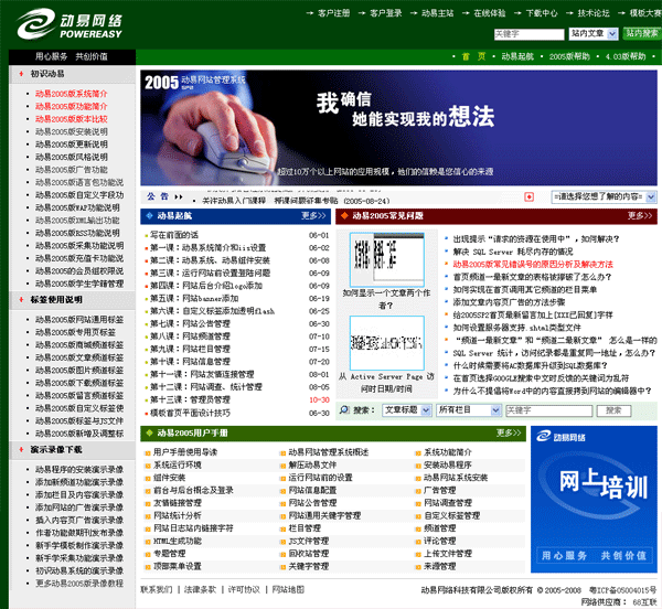 即日動(dòng)易公司啟用全新調(diào)整的幫助中心網(wǎng)站,以逐步構(gòu)建動(dòng)易公司網(wǎng)站群。改版后的幫助中心網(wǎng)站定位于對(duì)動(dòng)易公司獨(dú)立開(kāi)發(fā)所屬產(chǎn)品的全面說(shuō)明與指導(dǎo),全面涵蓋了動(dòng)易系統(tǒng)說(shuō)明及系統(tǒng)從架設(shè)、使用到運(yùn)用等用戶手冊(cè)中的所有內(nèi)容及2005版的常見(jiàn)問(wèn)題,以及以初學(xué)者的角度來(lái)編寫的動(dòng)易2005版錄像演示教程的動(dòng)易起航和4.03版幫助內(nèi)容。
