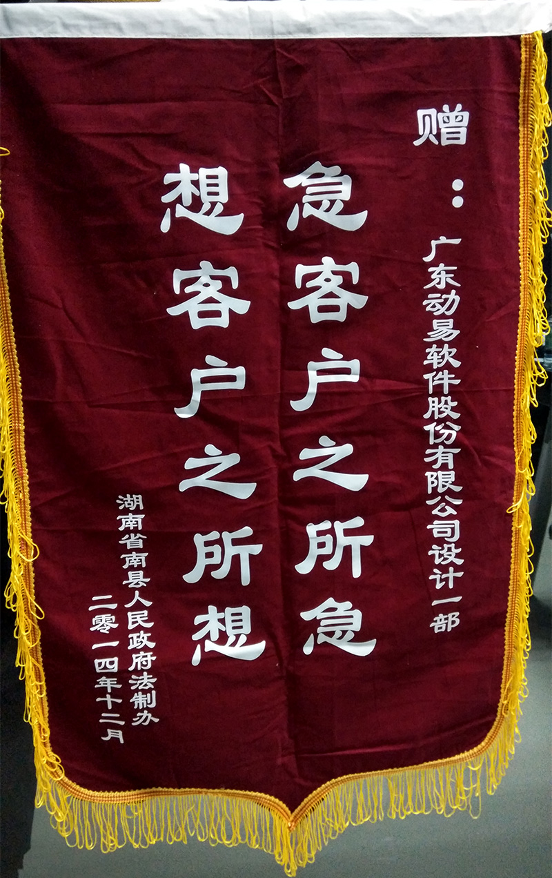 近日,動易公司設(shè)計一部收到了來自湖南省南縣人民政府代表謝意的錦旗,表達(dá)了對動易設(shè)計一部的設(shè)計師們在南縣人民政府網(wǎng)站群項目中優(yōu)質(zhì)服務(wù)的感謝之情。