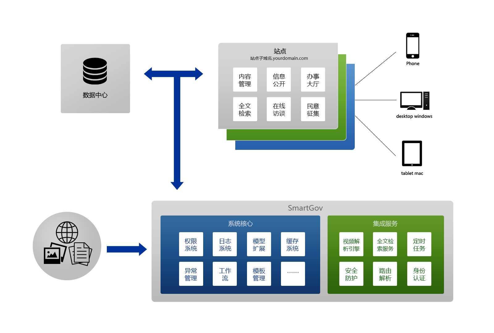 全新架構(gòu)的動易SiteAzure響應(yīng)并完全符合國辦《國務(wù)院辦公廳關(guān)于加強(qiáng)政府網(wǎng)站信息內(nèi)容建設(shè)的意見》文件精神,對網(wǎng)站集群化與集約化進(jìn)行了完美的詮釋,是構(gòu)建新一代政府門戶網(wǎng)站集群的最佳解決方案。