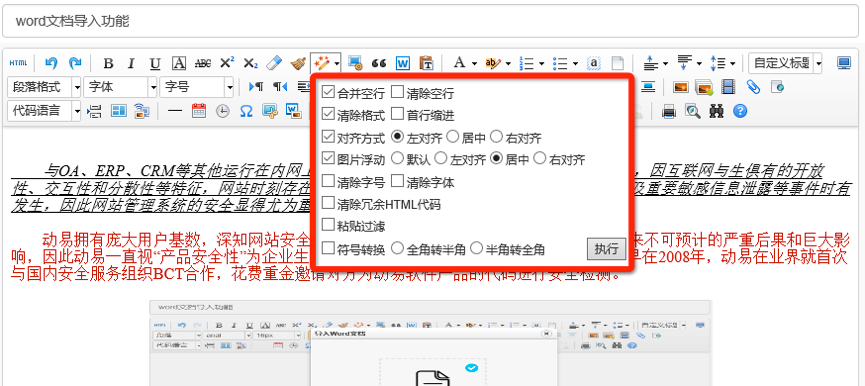 所謂”欲先善其事,必先利其器“,造成大量時間花費在排版這一環(huán)節(jié)上的主要問題,還是目前”內(nèi)容在線編輯器“的不好用上。絕大部分內(nèi)容編輯器無法保留或保留不全從 Word 里復(fù)制粘貼到編輯器里的內(nèi)容格式,造成需要二次編輯或重新編輯。所以,如果能夠幫助客戶解決保留格式并可以自動排版這一需求,將可以大大提升政府網(wǎng)站的運營效率。