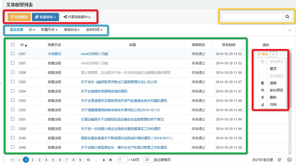 紅色區(qū)域:全 Ajax 當(dāng)前頁面無刷新的新數(shù)據(jù)操作和快捷操作區(qū)域。