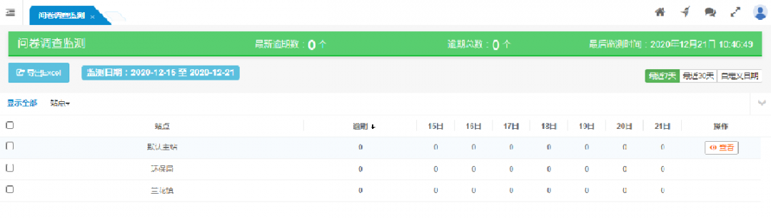 按站點顯示各站點的問卷調查活動開展情況的監(jiān)測結果。