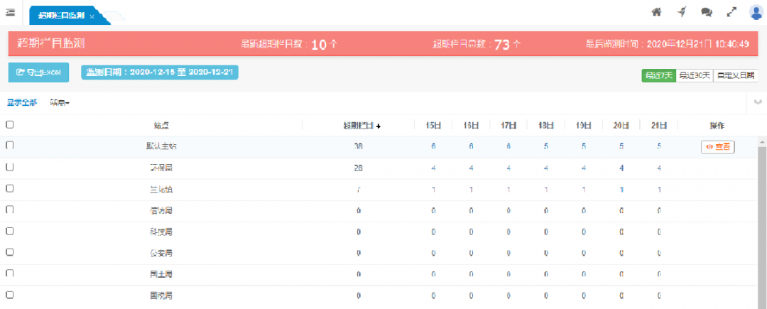 按站點顯示各站點的超期欄目監(jiān)測情況。
