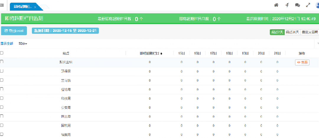 按站點顯示各站點的即將超期欄目監(jiān)測情況。