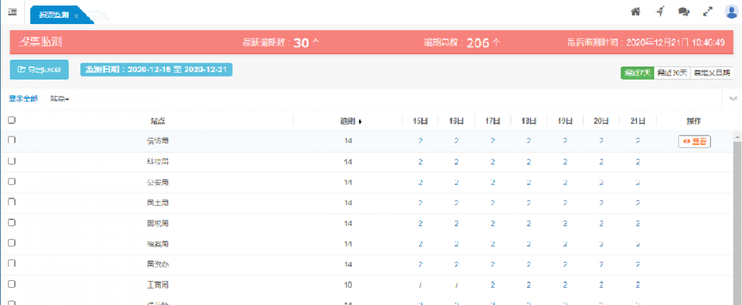 按站點顯示各站點的投票活動開展情況的監(jiān)測結果。