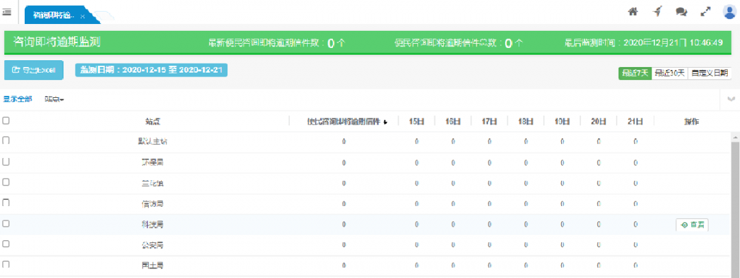 按站點顯示各站點的便民咨詢逾期辦理情況的監(jiān)測結果。