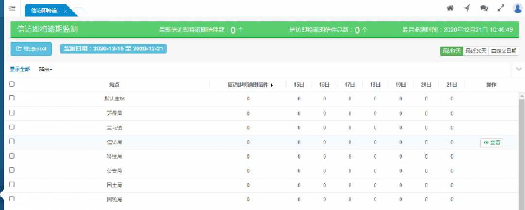 按站點顯示各站點的網(wǎng)上信訪逾期辦結情況的監(jiān)測結果。