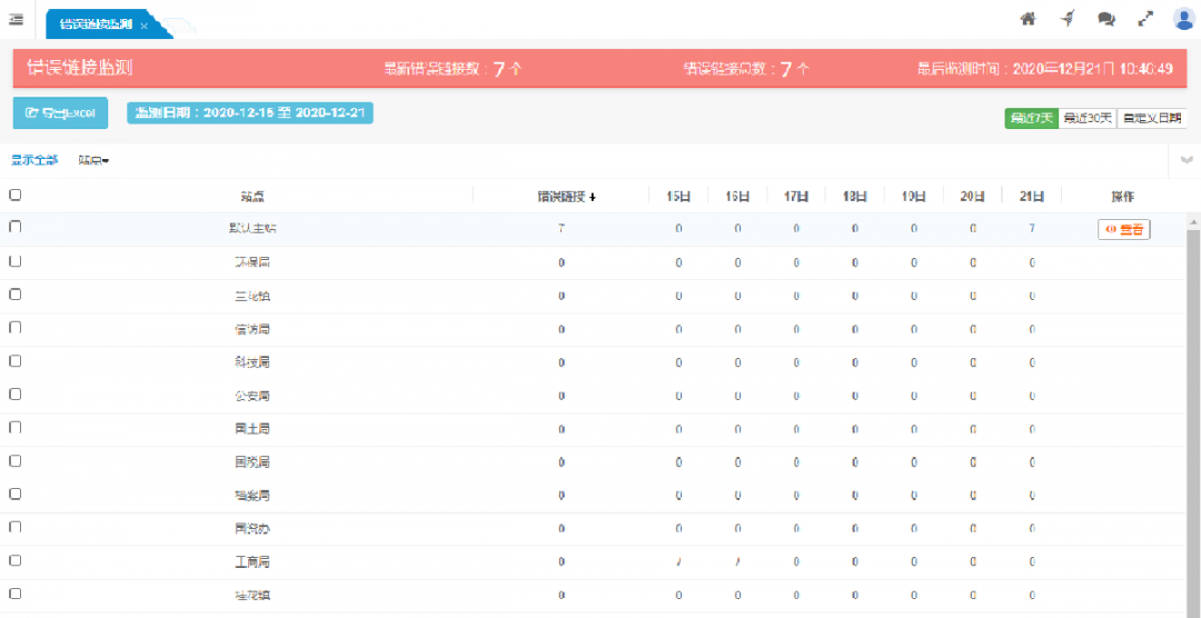 按站點顯示各站點的錯誤鏈接監(jiān)測情況。