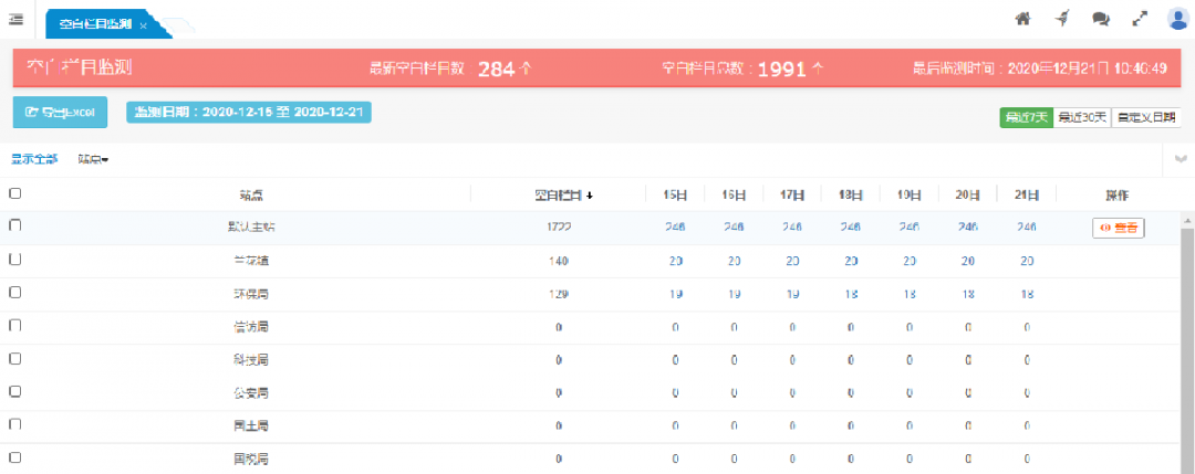 按站點顯示各站點的空白欄目監(jiān)測情況。