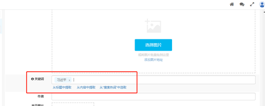 為了操作方便,系統(tǒng)還提供了三種方式來自動(dòng)提取關(guān)鍵詞:從標(biāo)題中提取、從內(nèi)容中提取、從“搜索熱詞中選取”。