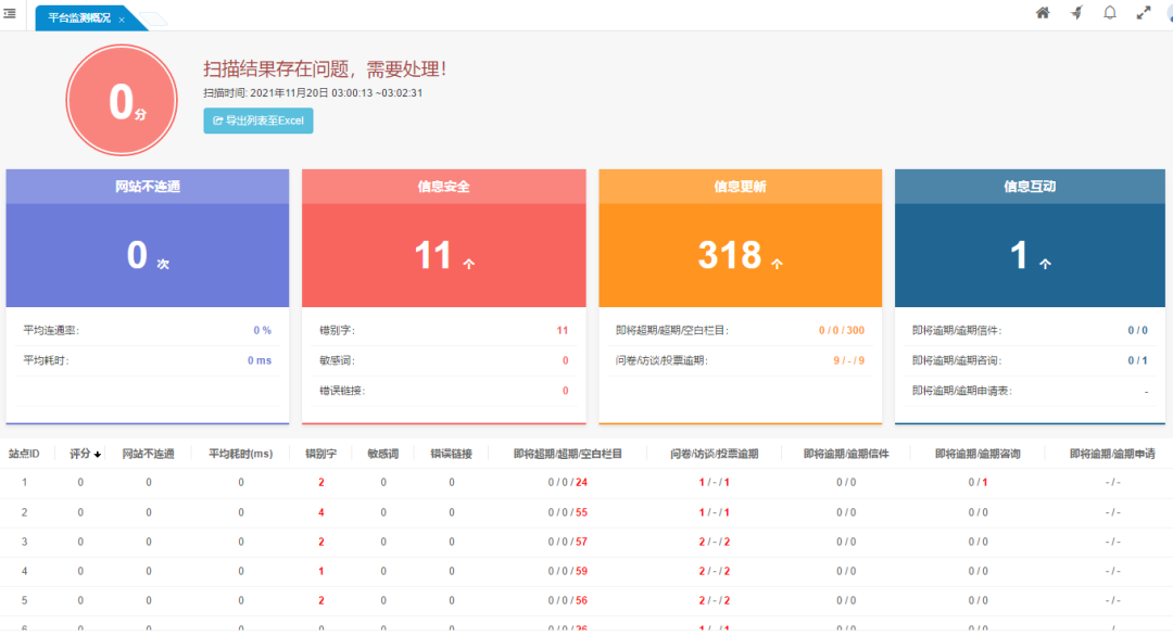 提供了一鍵掃描績效考核情況功能,并得出績效考核報告,讓網(wǎng)站管理員對網(wǎng)站運營情況一目了然。