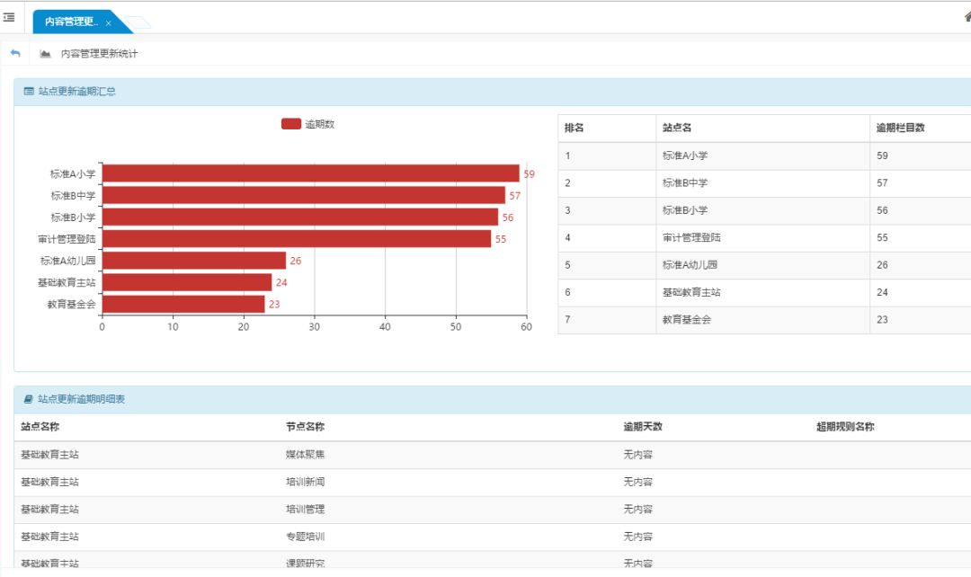 內(nèi)容更新預警具有主動提醒功能,系統(tǒng)會自動根據(jù)規(guī)則的周期判別信息是否及時更新,然后提醒相關管理員。