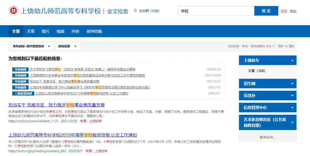 智能的全文檢索技術,可支持檢索網(wǎng)站群全站數(shù)據(jù),也支持跨站點或指定站點的檢索。可為網(wǎng)站解決海量數(shù)據(jù)下的站內信息和文檔檢索應用,向師生、社會人士提供高效、準確、個性化的站內資訊搜索體驗,大大提升用戶在網(wǎng)站的檢索和查詢體驗。