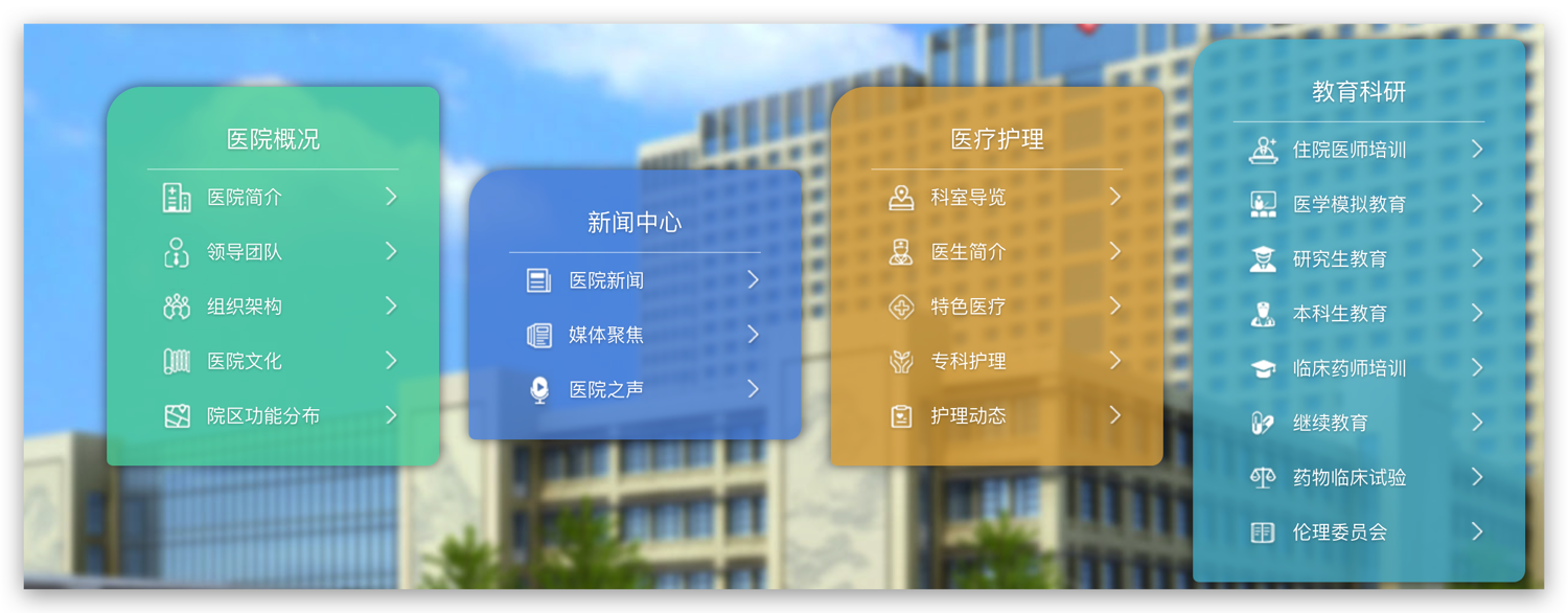 社會入口主要展示醫(yī)院概況、科研教學(xué)、動態(tài)新聞等,讓公眾快速了解醫(yī)院品牌與實力。