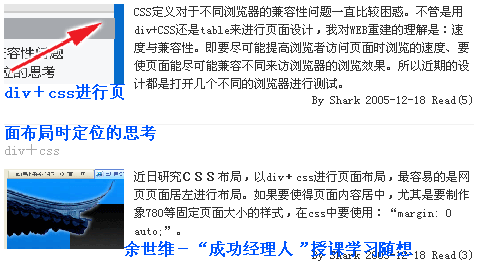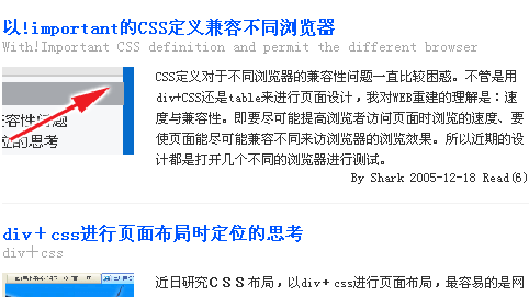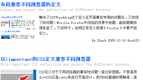 在Opera瀏覽器中瀏覽的效果中,標題頂部缺少間距倒也說得過去,至少沒影響頁面效果;Mozilla Firefox中瀏覽的效果中標題、副標題都擠得亂套了,說明還有定義狐貍(Firefox)中要嚴格定義,耐心查查吧。