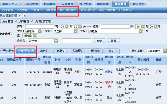醫(yī)院可對(duì)預(yù)約信息進(jìn)行靈活處理,系統(tǒng)還提供對(duì)所有預(yù)約記錄歷史的按時(shí)間段查詢(xún),并可將查詢(xún)記錄導(dǎo)出至EXCEL的功能,以方便對(duì)預(yù)約記錄的進(jìn)一步分析和管理。