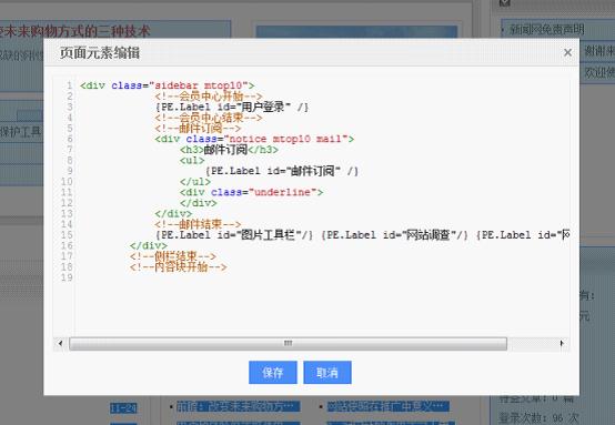 在模板可視塊編輯頁面,點(diǎn)擊頁面右上角“頁面元素管理”選項(xiàng),隨后,用鼠標(biāo)框選需要編輯的模塊,即出現(xiàn)該模塊的代碼修改編輯框,修改后保存即可在界面中看到實(shí)際效果。
