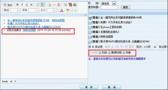 選擇需要擴(kuò)充的信息屬性(如作者、欄目名、更新時(shí)間),拖入編輯區(qū)域后會(huì)自動(dòng)顯示信息的相關(guān)屬性,如下方圖所示: