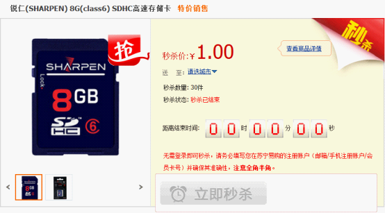 如下圖是蘇寧易購(gòu)一元秒殺專區(qū),30件超高性價(jià)比商品被瞬間秒殺: