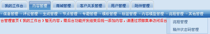 但是2006版中,第一流程不可定制、第二僅限于制定的這些過(guò)程。但是到了SiteFactory 版中,首次出現(xiàn)了“流程管理”和“狀態(tài)代碼管理”兩個(gè)菜單。“工作流”的應(yīng)用遍及網(wǎng)站管理的方方面面。