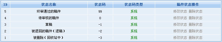 這樣,當(dāng)用戶投稿后,稿件將自動(dòng)變?yōu)椤按幚怼保缓蟪霈F(xiàn)在編輯可見(jiàn)的列表中,當(dāng)編輯打開(kāi)一篇稿件,即可設(shè)置“審閱中”狀態(tài),編輯審閱完成后,根據(jù)情況使其通過(guò)或退稿。通過(guò)的文章將出現(xiàn)在管理員可見(jiàn)的列表中,待管理員進(jìn)行生成操作后,文章?tīng)顟B(tài)自動(dòng)變?yōu)椤耙寻l(fā)布”。