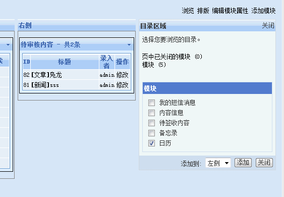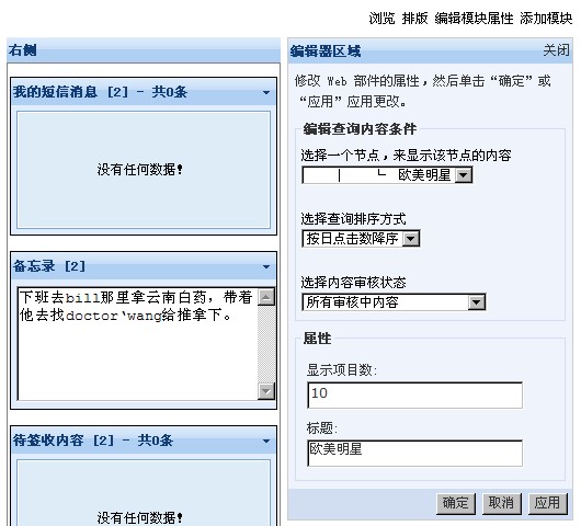 特別是可以將系統(tǒng)相應模塊添加到頁面中,比如各個節(jié)點中的文章、下載、圖片等信息和系統(tǒng)內(nèi)置的Webpart模塊。