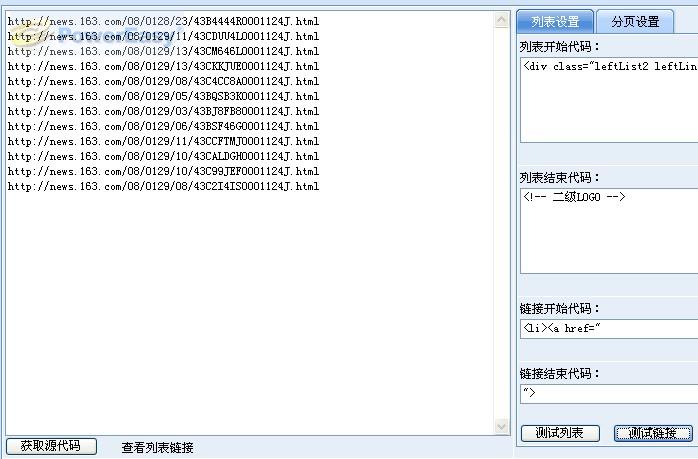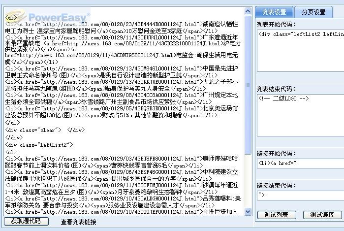 這里說的即時(shí)顯示指的是無刷新即看見采集的效果,所有的采集規(guī)則都可以通過AJAX效果進(jìn)行預(yù)覽。比如我們采集 的國內(nèi)新聞列表,當(dāng)我們?cè)O(shè)置好列表采集規(guī)則后,點(diǎn)擊“測(cè)試列表”和“測(cè)試鏈接”我們就可以直接在左邊預(yù)覽到采集后的效果(如下圖)。