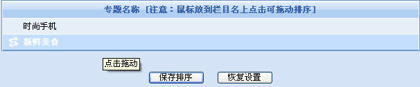 2、專題類別\專題排序:可進(jìn)行專題類別的排序,以決定各專題顯示的先后順序,讓商家可自行調(diào)整各類專題的重要性排序。在排序操作上,動易SF eShop1.1獨(dú)具匠心地引入了Ajax技術(shù)支持拖拽排序,極為方便。