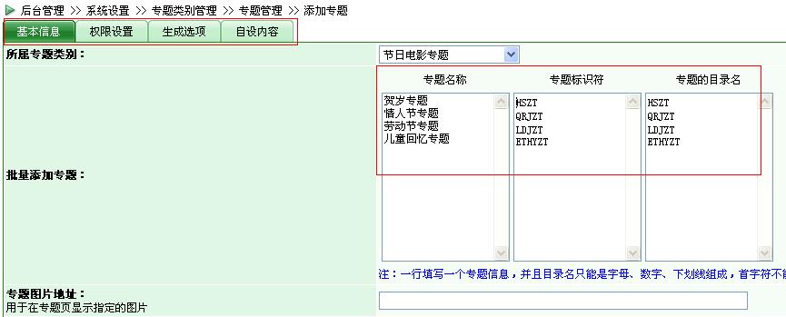 點(diǎn)擊“批量添加專題”后,就進(jìn)入到了添加界面,其他操作和節(jié)點(diǎn)添加是一樣的: