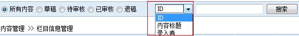 先來看看SiteFactory? 1.0版的搜索界面,很明顯只能夠搜索“文章ID”、“標題”、“錄入者”這三項: