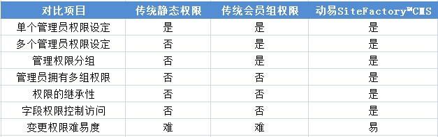 動易SiteFactory? CMS 正是一套以面向政府、事業(yè)單位、企業(yè)等領(lǐng)域為開發(fā)對象的企業(yè)級內(nèi)容管理系統(tǒng),它采用的就是基于標準RBAC模型(角色)的訪問控制方法。如下圖所示,傳統(tǒng)權(quán)限與動易SiteFactory? CMS角色的對比圖: