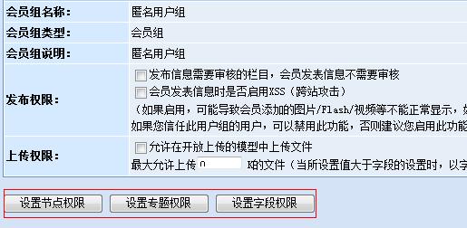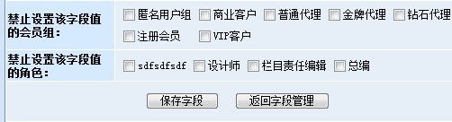 此途徑可以通過用戶管理中的“角色管理”和“會員組管理”來設置相應的字段權限。先來看一下動易SiteFactory? 新增加的“匿名投稿用戶組”的權限設置截圖:
