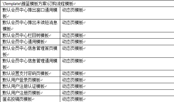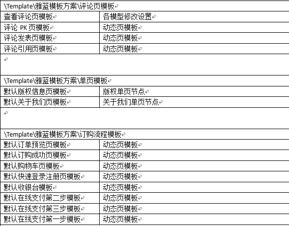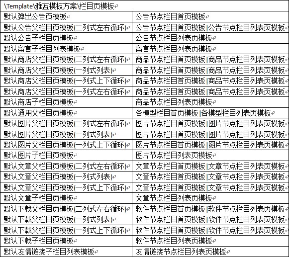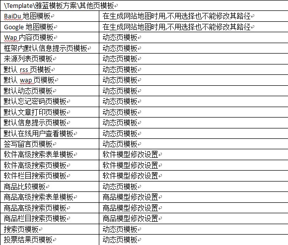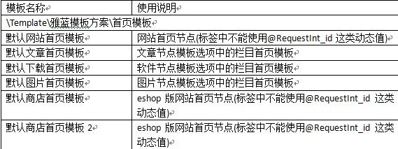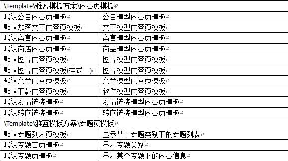附默認雅藍模板方案中各模板的使用說明: