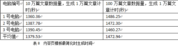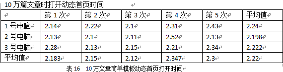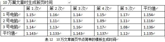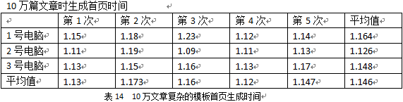 1)內(nèi)容頁模板最簡化,只保留顯示文章的標(biāo)題、作者、更新時間、內(nèi)容等,不要任何其他不相關(guān)的標(biāo)簽,如相關(guān)文章、推薦文章、熱門文章等,生成1萬篇文章計(jì)時。模板的前臺顯示效果見下圖: