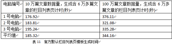 4)為上述欄目使用官方默認(rèn)的欄目列表頁模板,生成欄目列表頁,計(jì)時。模板的前臺顯示效果見下圖: