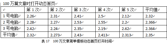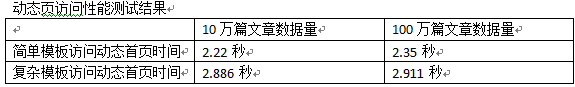 小結(jié):動易SiteFactory2.0的首頁的訪問速度可以說用“飛快”來形容,無論是10萬數(shù)據(jù)還是100萬數(shù)據(jù),無論是簡單模板還是復(fù)雜模板,首頁的HTML生成速度都在3秒左右。從數(shù)據(jù)中也可以看出來,同樣的模板時,10萬數(shù)據(jù)和100萬數(shù)據(jù)在生成HTML時沒有太大的性能差異,但模板的復(fù)雜度則直接影響了生成速度,模板越復(fù)雜,調(diào)用的標(biāo)簽越多,性能衰減得越厲害。