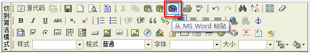 一、首先登錄后臺(tái),來(lái)到文章添加界面,在文章內(nèi)容編輯器中切換成高級(jí)模式,點(diǎn)擊“從 MS Word 粘貼”功能按鈕。