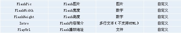 在Flash模型中新增的字段有Flash圖片、Flash寬度、Flash高度、Flash內(nèi)容簡(jiǎn)介、Flash播放地址等,站長(zhǎng)可以利用這些字段來(lái)設(shè)置Flash文件的首頁(yè)圖片、內(nèi)容簡(jiǎn)介、播放地址、寬高度等等,可以滿足普通Flash模塊構(gòu)建的需求。如果還需要做其他更多個(gè)性化效果或者設(shè)置的話,那就需要大家多動(dòng)動(dòng)腦筋動(dòng)動(dòng)指頭自力更生了哦(*^__^*)