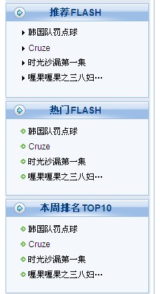 再來(lái)看看專(zhuān)門(mén)為Flash模型配置的前臺(tái)模板吧。在前臺(tái),系統(tǒng)在播放窗口下方內(nèi)置了“加入收藏”、“發(fā)給好友”、“全屏顯示”、“再來(lái)一次”等效果標(biāo)簽,