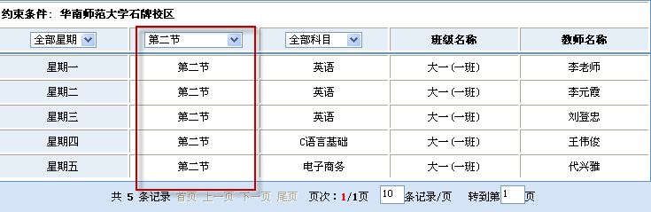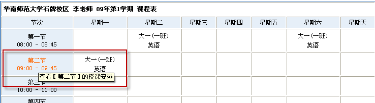 此外,還可以直接點(diǎn)擊任意課表上的教師姓名或課程節(jié)次來(lái)直接查詢?cè)摻處熁蚋墓?jié)次的排課情況,非常方便快捷。